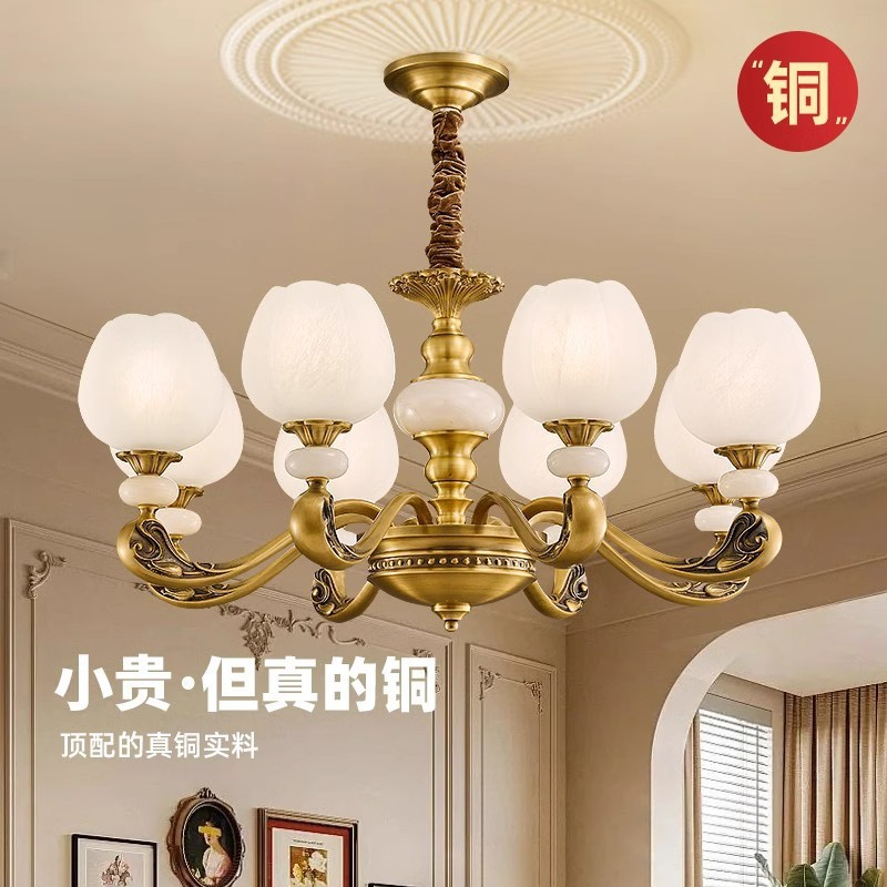 全銅フランス中古アメリカ式レトロリビングシャンデリア天然雲石豪華高級感レストラン寝室ブックルームライト