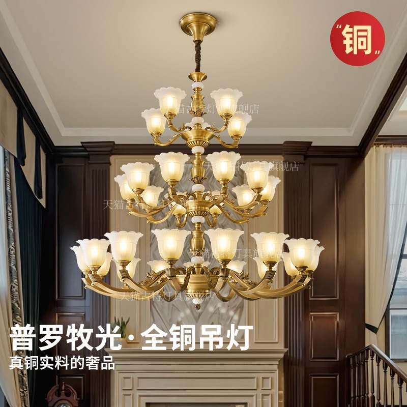 全銅アメリカ中古フランスレトロリビングルームシャンデリア新型別荘玉メインライト寝室複式回転階段