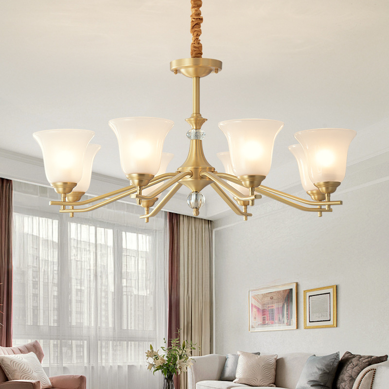 全銅アメリカ田園シャンデリアランプカバー下リビングランプ簡易ヨーロッパレストランシャンデリア寝室ランプ全銅ランプ