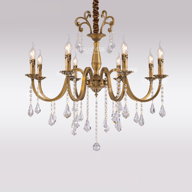 新商品のフランス式の軽い豪華なシャンデリアの全銅の客間の明かりの水晶の寝室の部屋の明かりのアメリカ式の復古の大気のレストランの照明