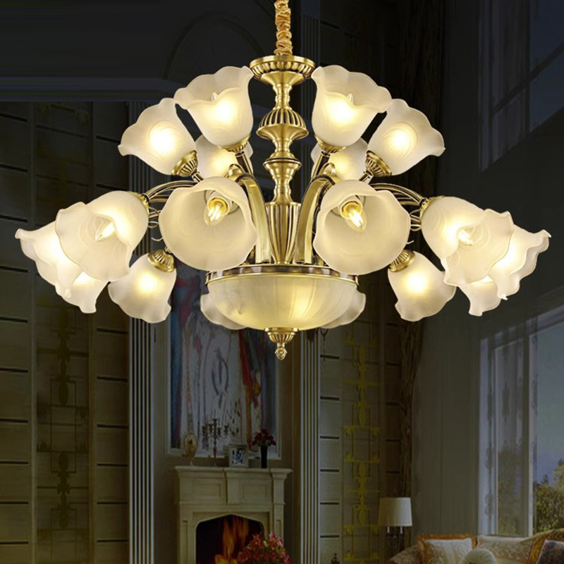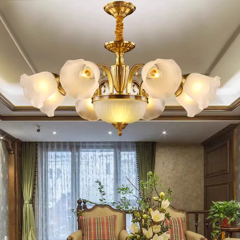 アメリカの田舎の全銅シャンデリア木綿花ガラスランプカバー下全銅灯リビングルームランプ