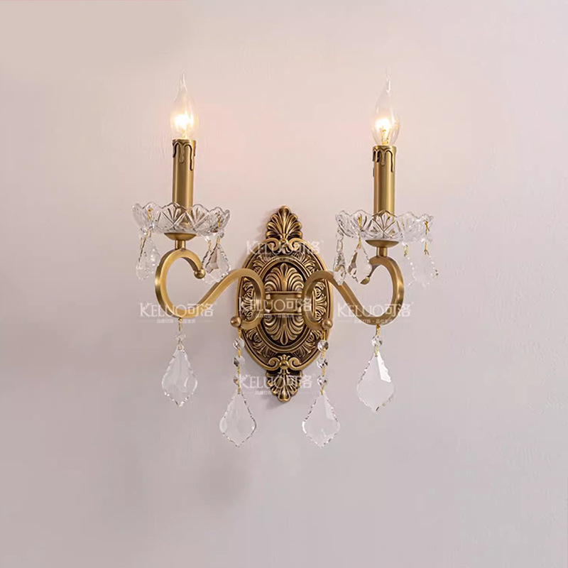 新商品のフランス式の軽い豪華な壁の明かりの全銅の寝室の明かりのアメリカの水晶の通路のベッドのヘッドライトの豪華な大気の復古の照明器具
