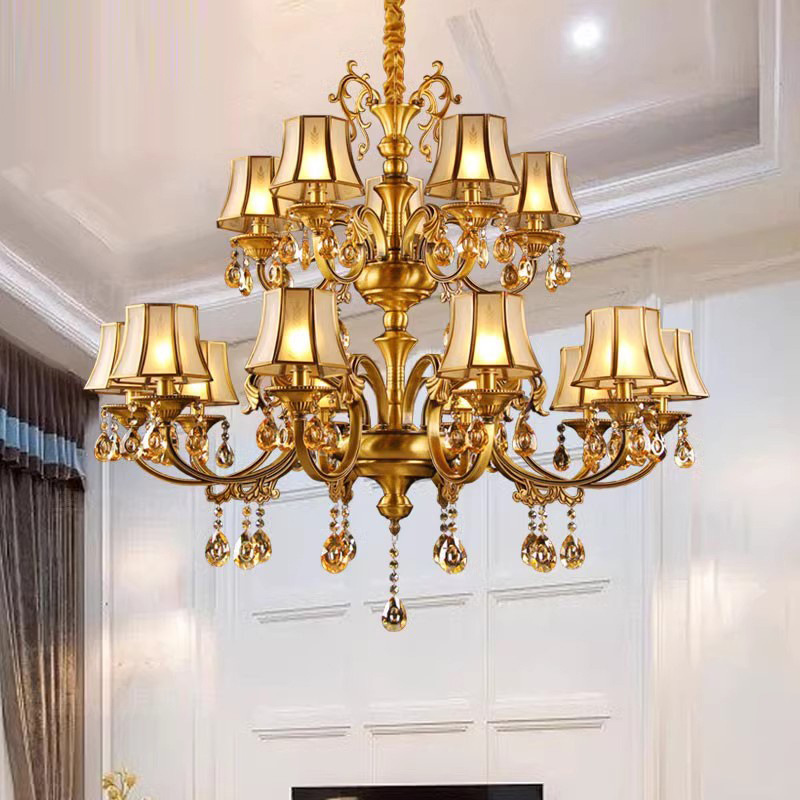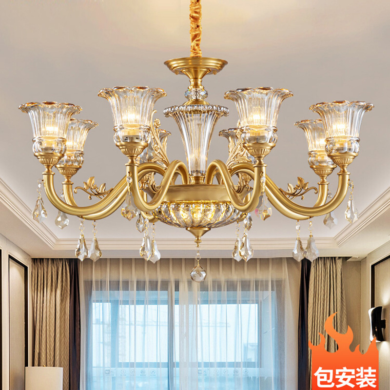 アメリカンオール銅クリスタルシャンデリアリビングルームライトメインライトライト高級レトロヨーロッパシンプルなレストラン寝室ライト新しいY339