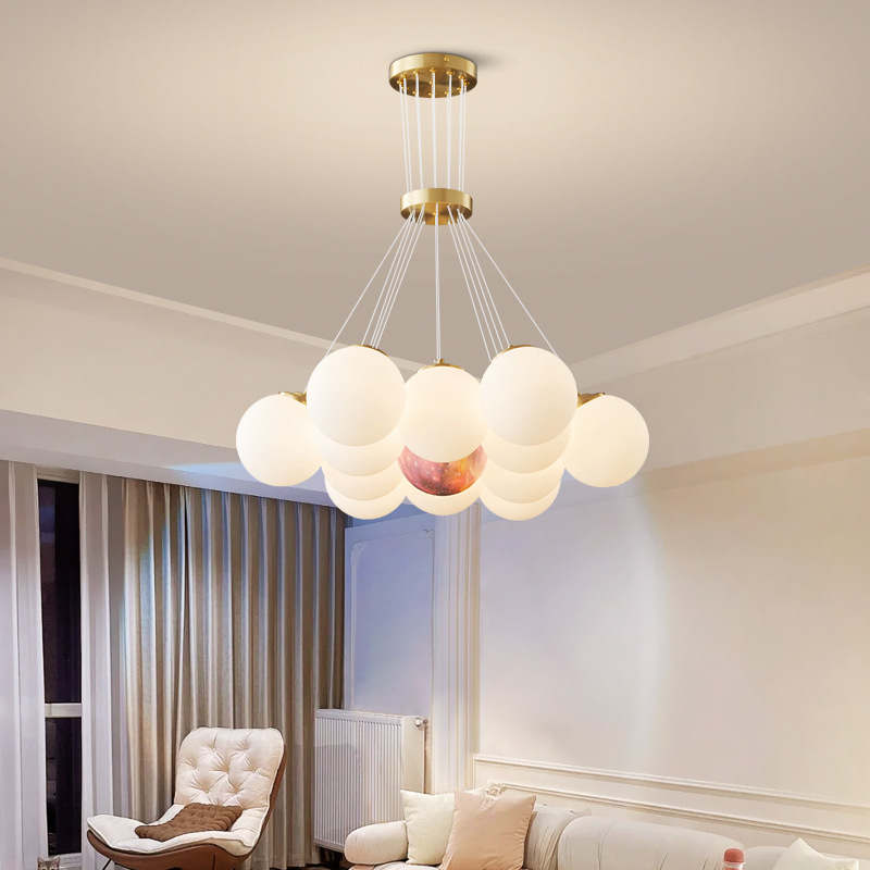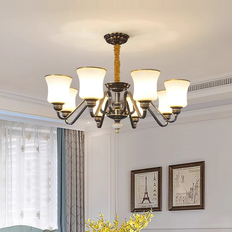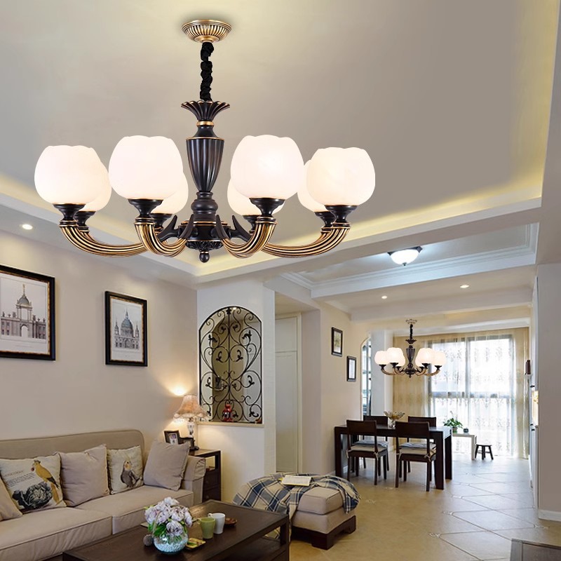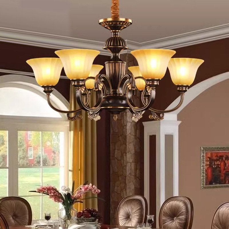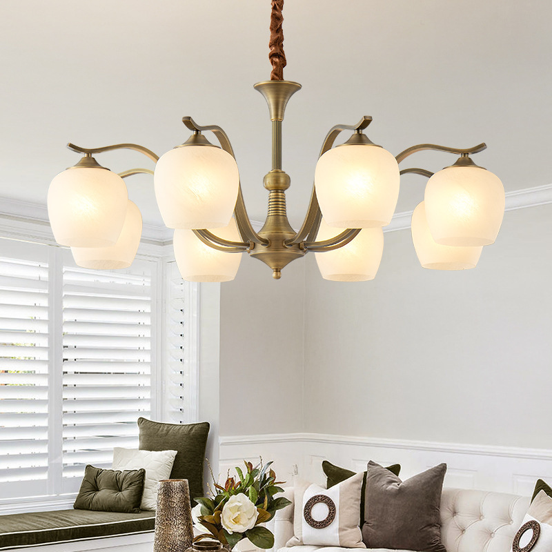 アメリカンレトロな全銅シャンデリア、リビングルーム、全銅照明器具、ダイニングルーム、寝室、豪華で雰囲気のある模造大理石シャンデリア照明器具