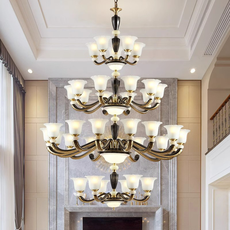 アメリカ式のシャンデリアの全銅の客間の明かりのヨーロッパ式の豪華な別荘のホテルのロビーの明かりの複式のビルの客間の中空のビルの照明器具