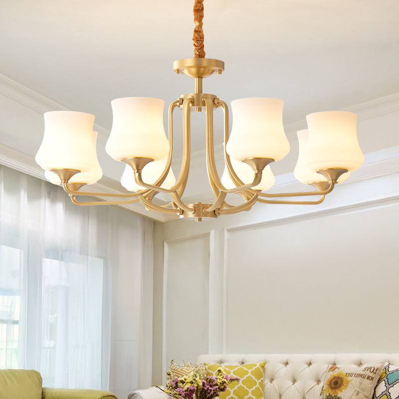 アメリカンシャンデリア、リビングルームランプ、雰囲気のある全銅製ヨーロピアンスタイルのベッドルームとダイニングルームランプ、モダンでシンプルな軽い高級ランプ、家全体のパッケージ