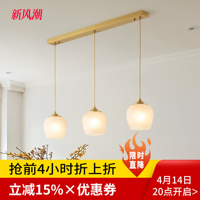 新しい中国風の全銅リビングルームホールランプ、モダンでシンプルで軽い高級感のある中国風のレストランランプ、ひょうたん寝室のシャンデリア