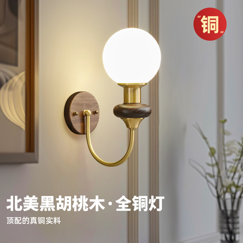 全銅アメリカンミッドセンチュリーフレンチレトロリビングルームウォールランプ新しいベッドルームベッドサイドバルコニー通路玄関階段ランプ