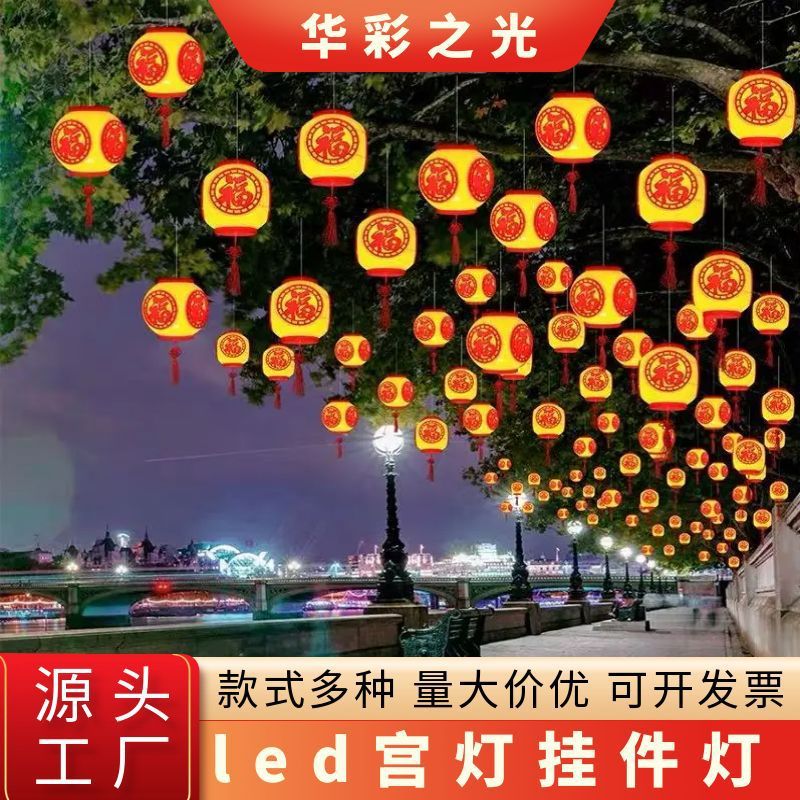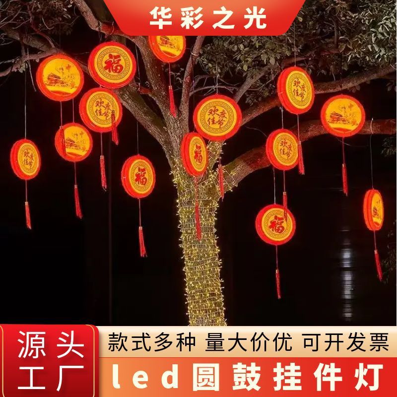 Led円鼓灯屋外防水旧正月街庭装飾灯福字宮灯灯灯