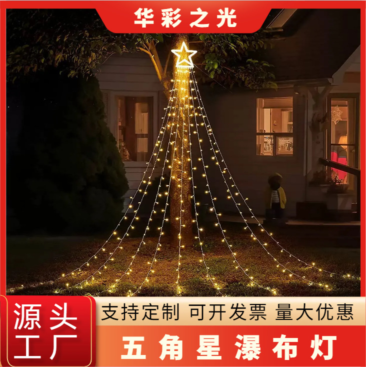 Led星カーテンライトクリスマスツリー太陽エネルギー五角星滝装飾灯屋外庭園装飾流水灯