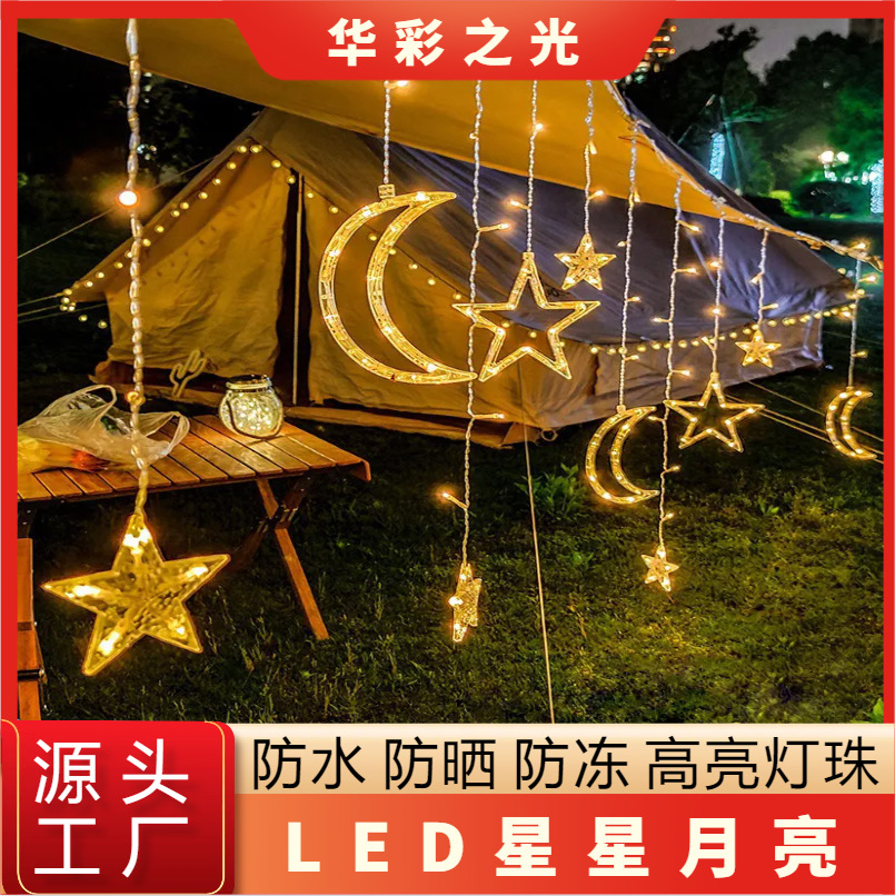 Ledスタームーンストリングライト屋外防水キャンプ部屋レイアウト装飾ライトカーテンライトledソーラーライト