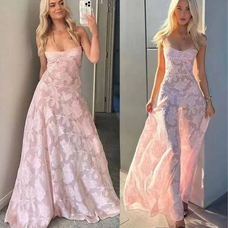 現物2024国境を越えた欧米のストラップワンピース女性夏の新型の背中のストラップは腰を収めてシフォンのロングスカートを修理します。