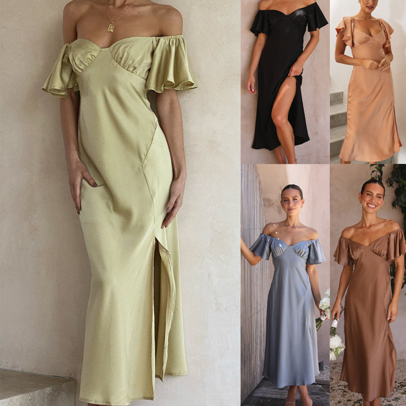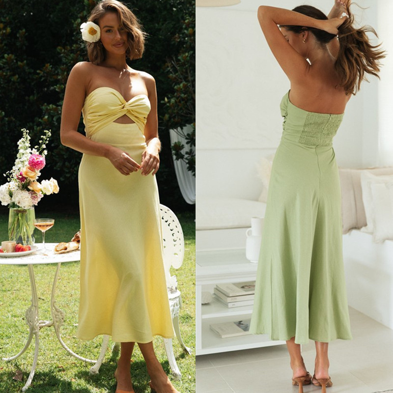 2022クロスボーダーは欧米の女装の新型純色の胸の後ろに腰の長いワンピースをまとめます。