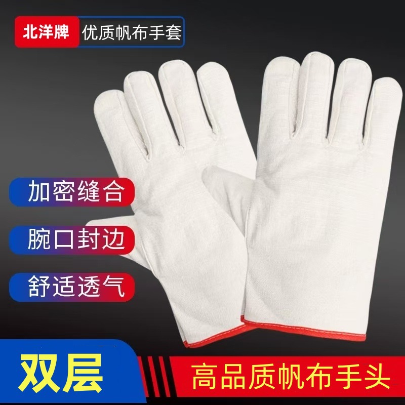 24線二重帆布手袋は耐摩耗性機械工事現場の滑り止め電気溶接工労働者の労働保護手袋を厚くする