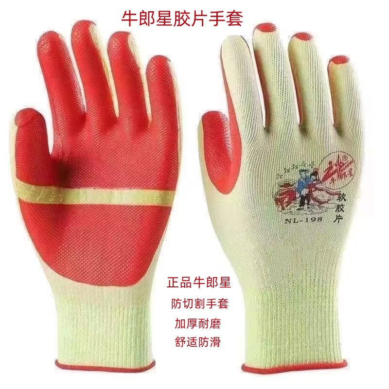 牛郎星フィルム手袋は耐摩耗性滑り止め耐摩耗性切断工事現場鉄筋工鉱山採石工場労働保護手袋を厚くした