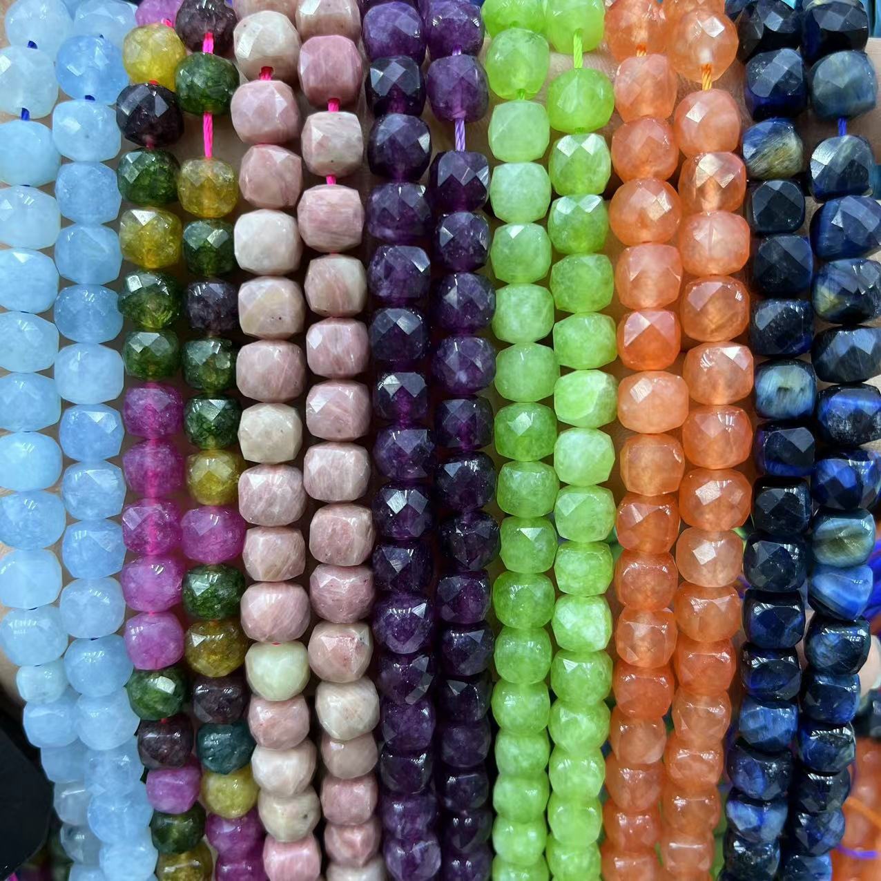 8X8mm 天然レインボートルマリン瑪瑙ファセットシュガーキューブファセットスクエアビーズ半完成ジュエリー diy アクセサリー