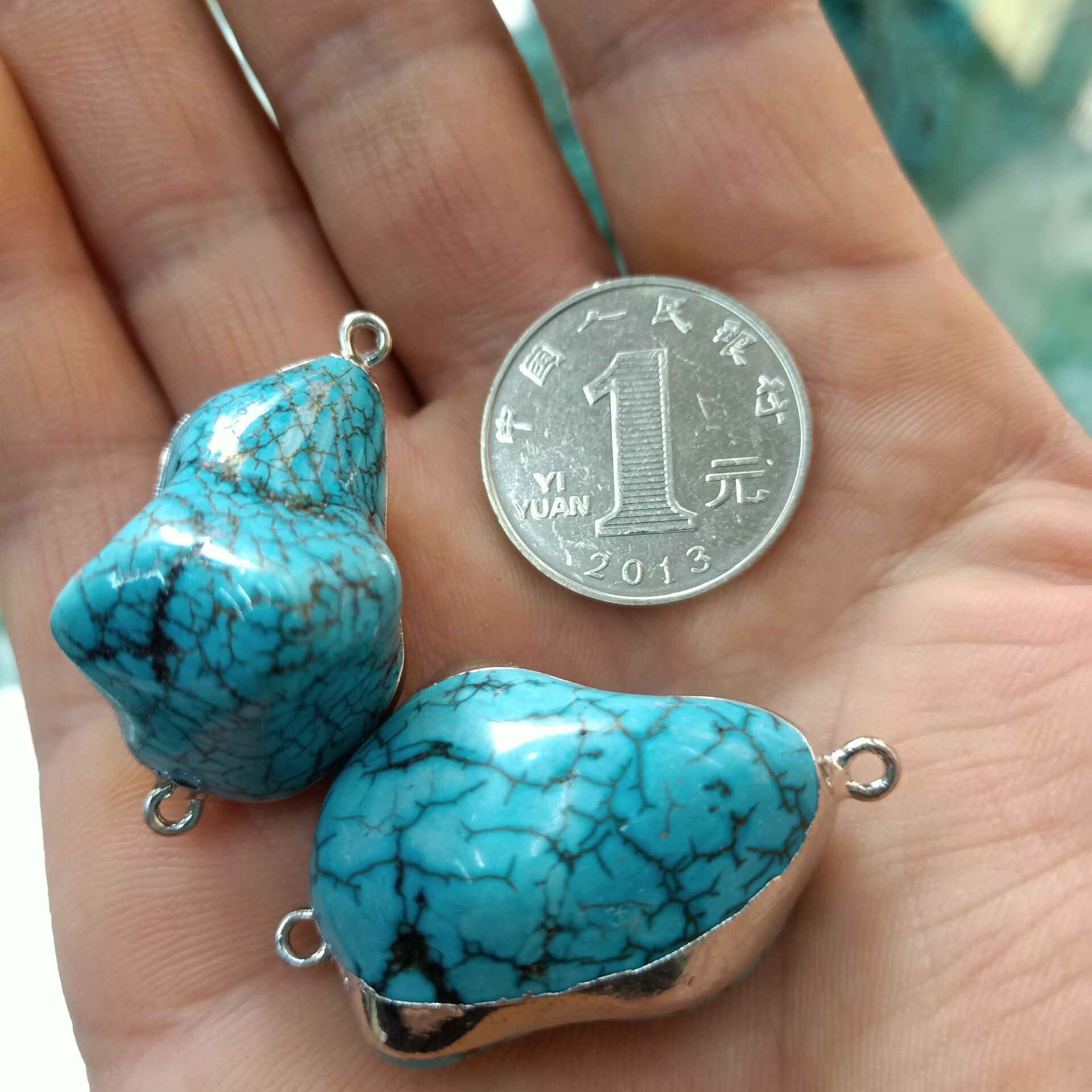 ターコイズ最適化高磁器青随形原石銅包辺銀メッキペンダントネックレスブレスレットアクセサリー