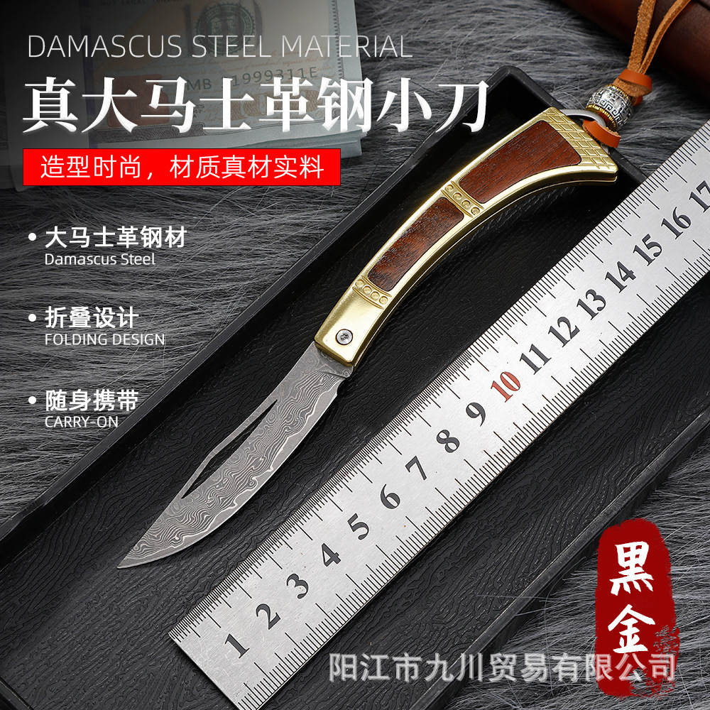 ダマスカス鋼屋外携帯折り畳みナイフ鋭利な身を守る鍵ストラップ家庭用皮むき果物ナイフ