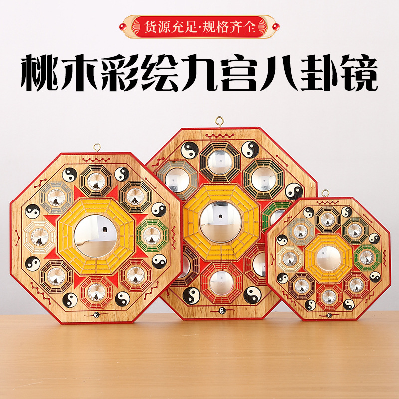 ピーチウッド塗装太極拳陰陽九宮八卦ミラーペンダントホームペンダントピーチウッド九宮八卦ミラー卸売