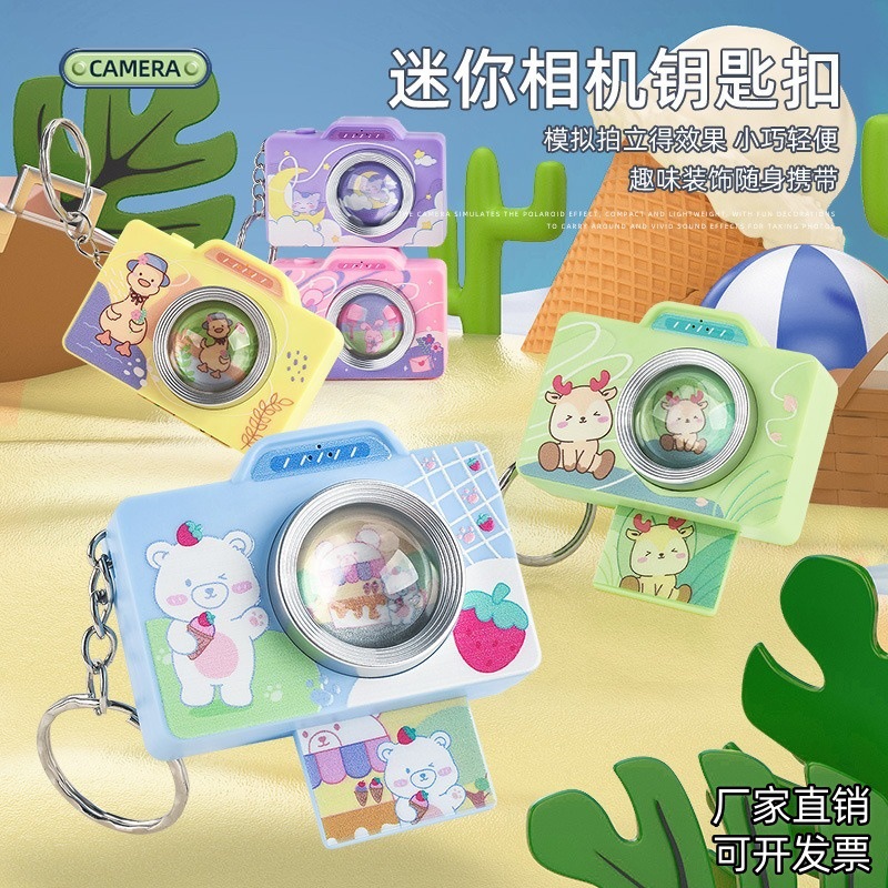 クロスボーダー漫画発光レトロカメラキーホルダーミニポラロイドサウンドカメラバッグペンダント小さなギフト