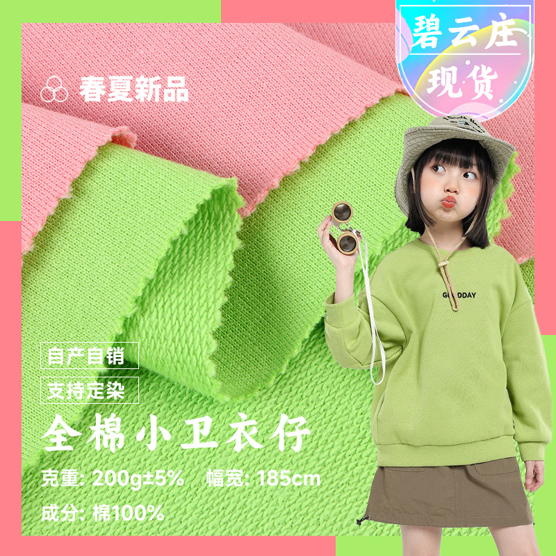 200g全綿メリヤスの布地は秋冬の純綿の薄い服の布地の子供服の上着の布地を卸売りします。
