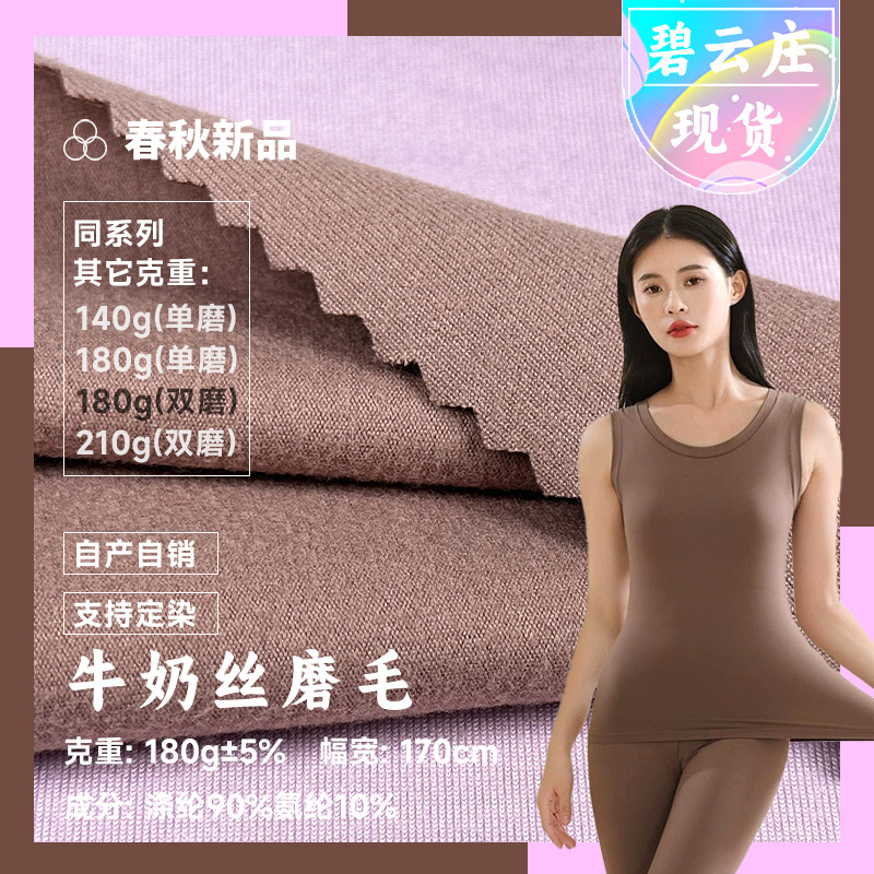 100Dミルク糸両面磨毛汗布180gポリエステルアンモニア磨毛四面高弾性プルフレーム拉毛底シャツ生地
