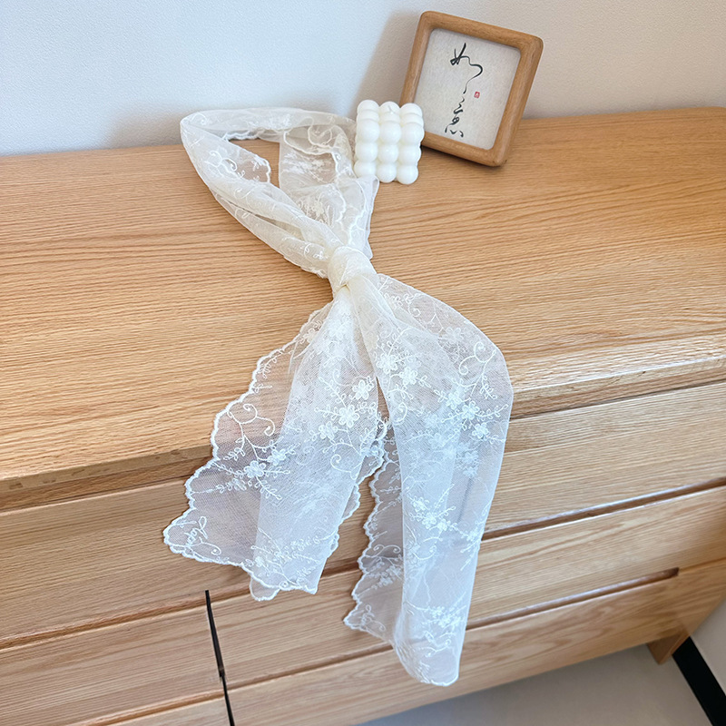 春の新型フランスのレトロなレースの花の長いスカーフの刺繍のヘアバンドは髪を縛って包みます。