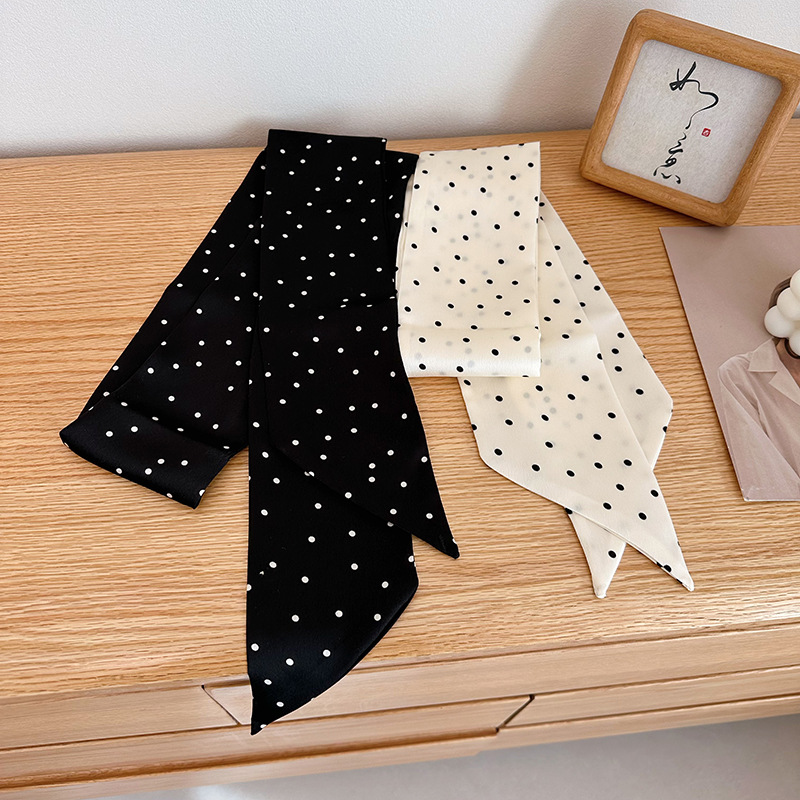 ヘボン風波点の長いスカーフ2025年の新しい春の髪にシルクタオルのベルトのマフラーをつけてマフラーの首のタオルを長くします。
