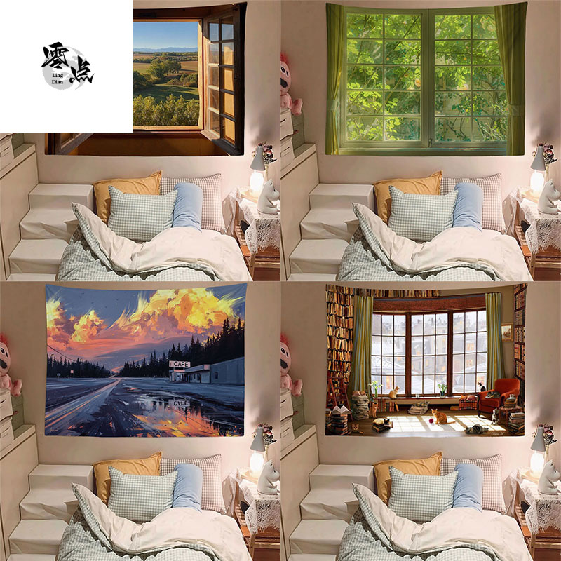 Ins ins風窓外風景部屋装飾背景布寝室壁布背景壁ポスター寮改造