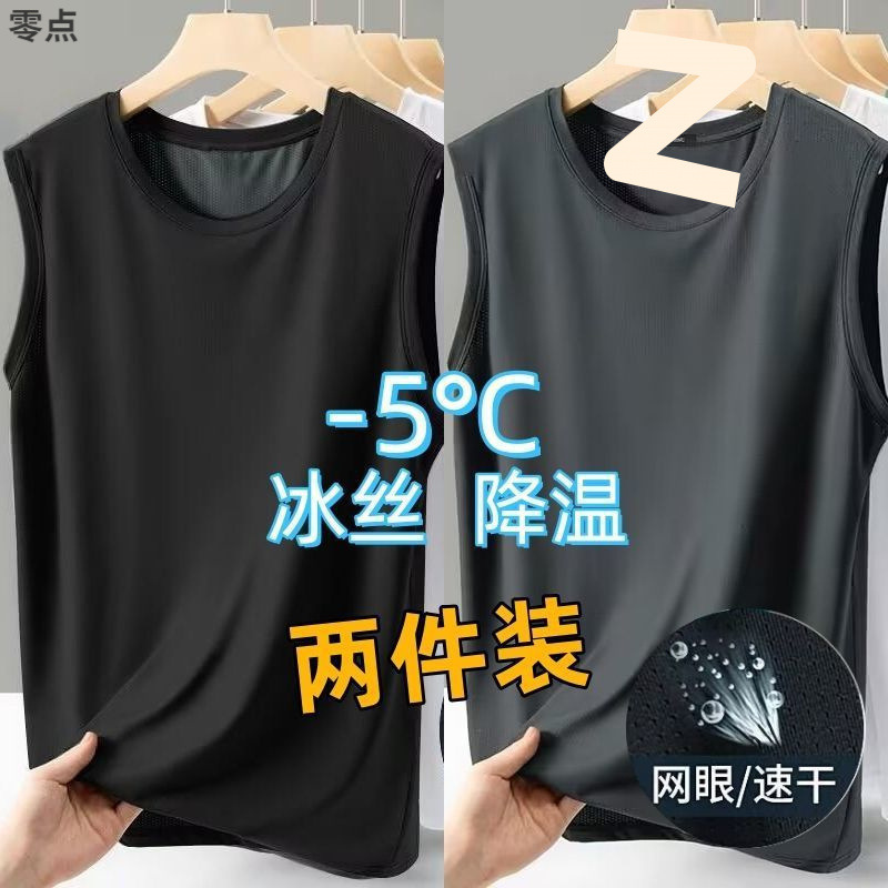 アイスシルクベストメンズ夏チョッキ速乾性アイスフィールルーズ大きいサイズアイスシルクスポーツバスケットボールフィットネスTシャツトレンド