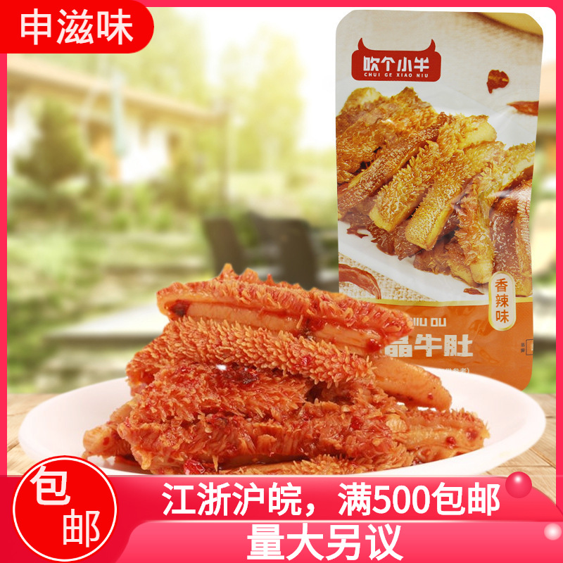子牛を吹いて辛い水晶の牛の腹のかん味の間食を食べます。