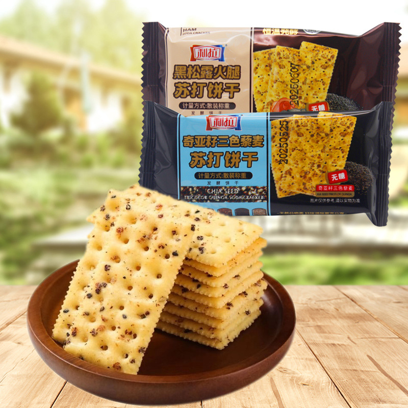 リラ黒トリュフハムチアシード三色キヌアソーダビスケット全箱 5kg 卸売カジュアルスナック