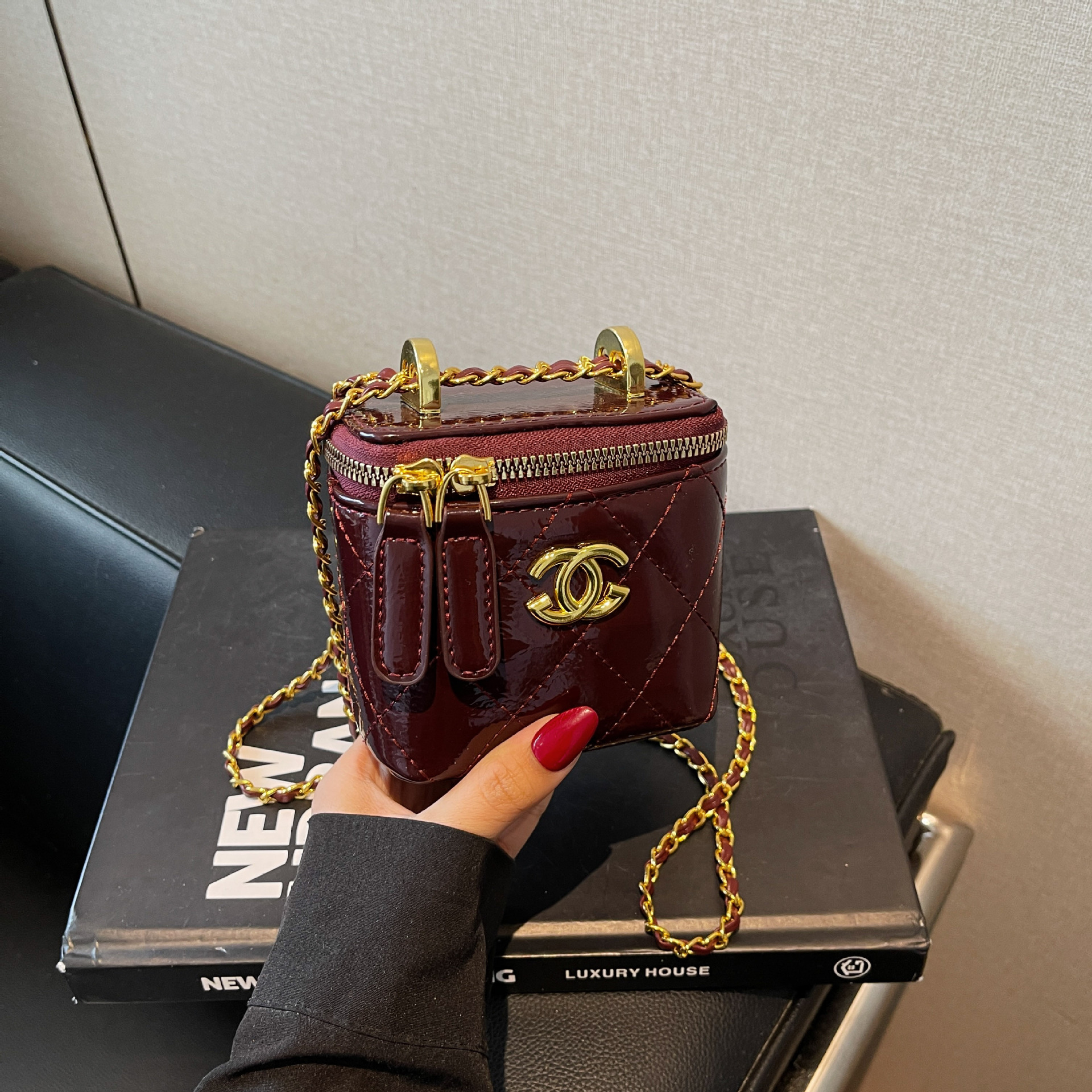 クロスボーダーレトロ光沢のある mi.u ハンドバッグボックスバッグ女性のための 2024 ハイエンドトレンディなライト高級小さな香りのスタイルシングルショルダークロスボディバッグ