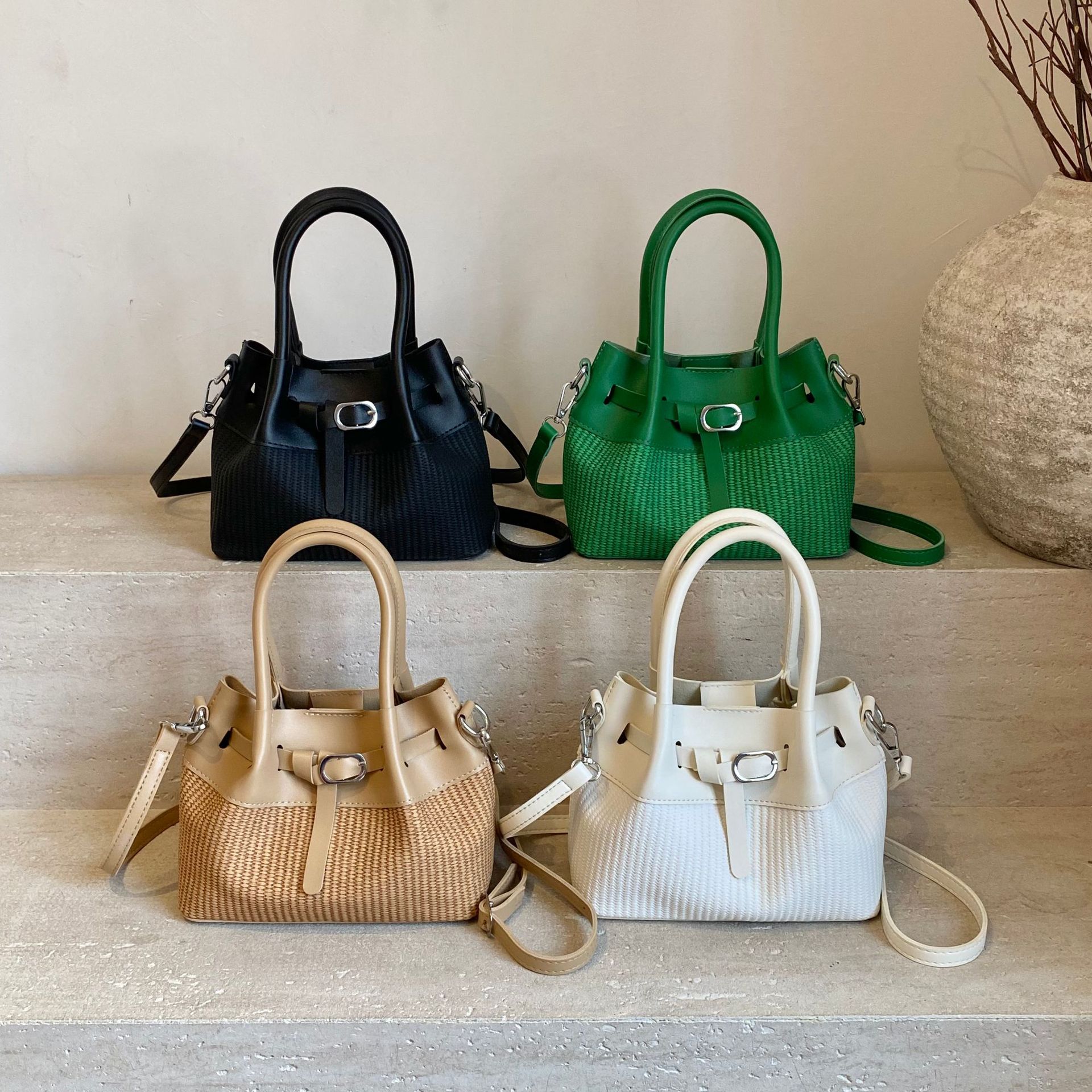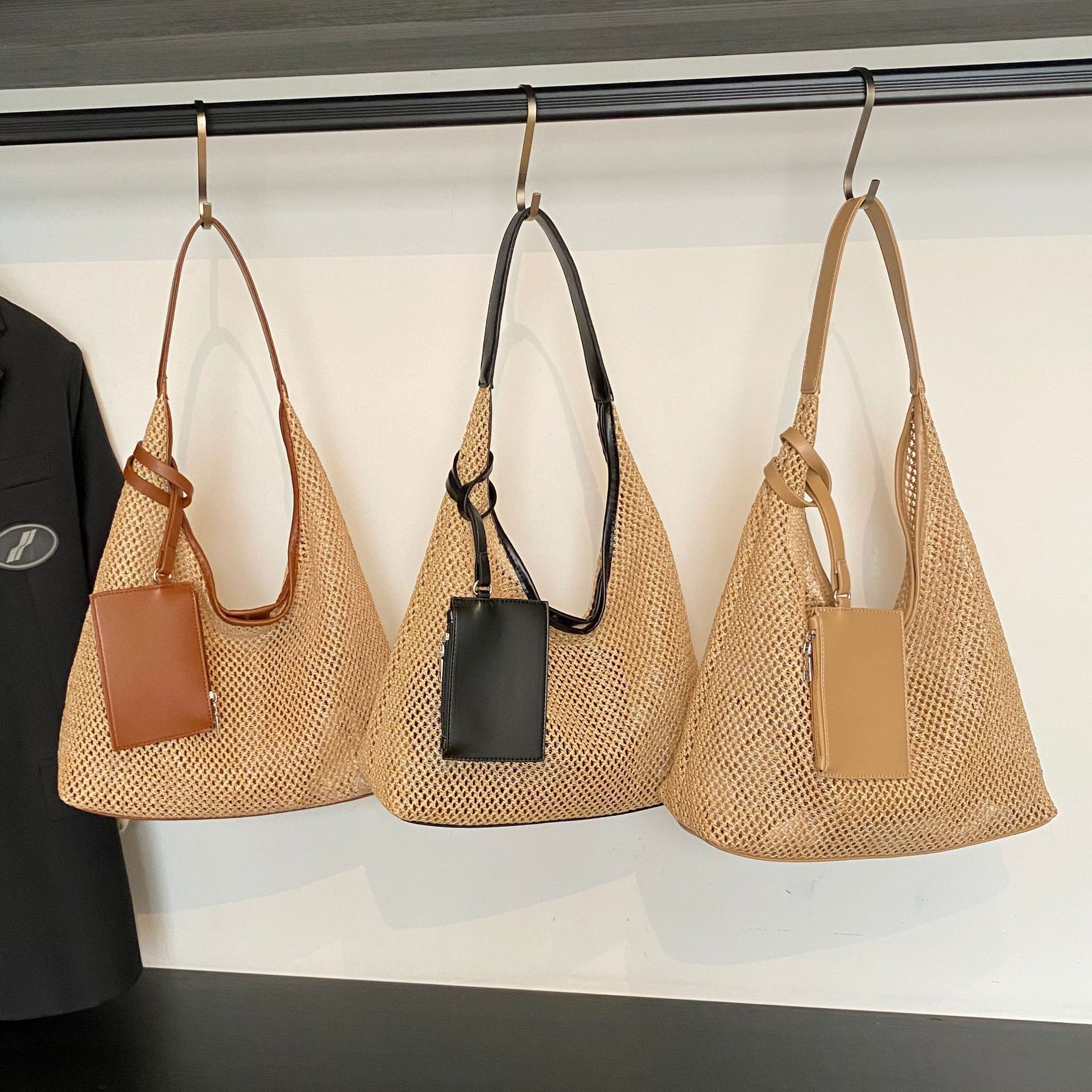 韓国デザインの織りショルダーバッグ、レトロファッションの母娘バッグ、わら編みの万能トートバッグ、大容量の脇の下バッグ