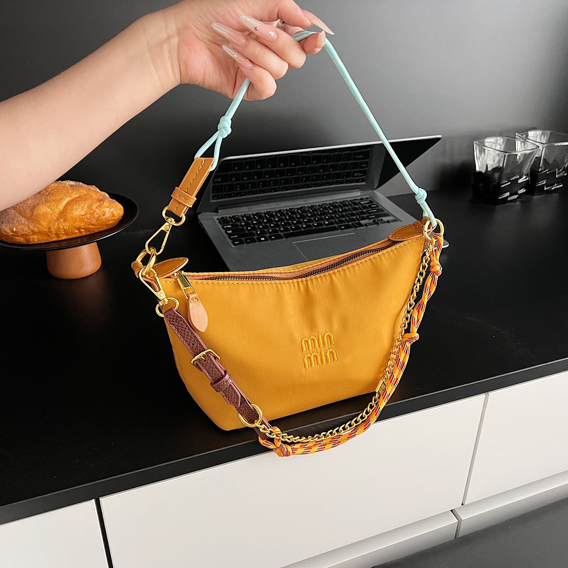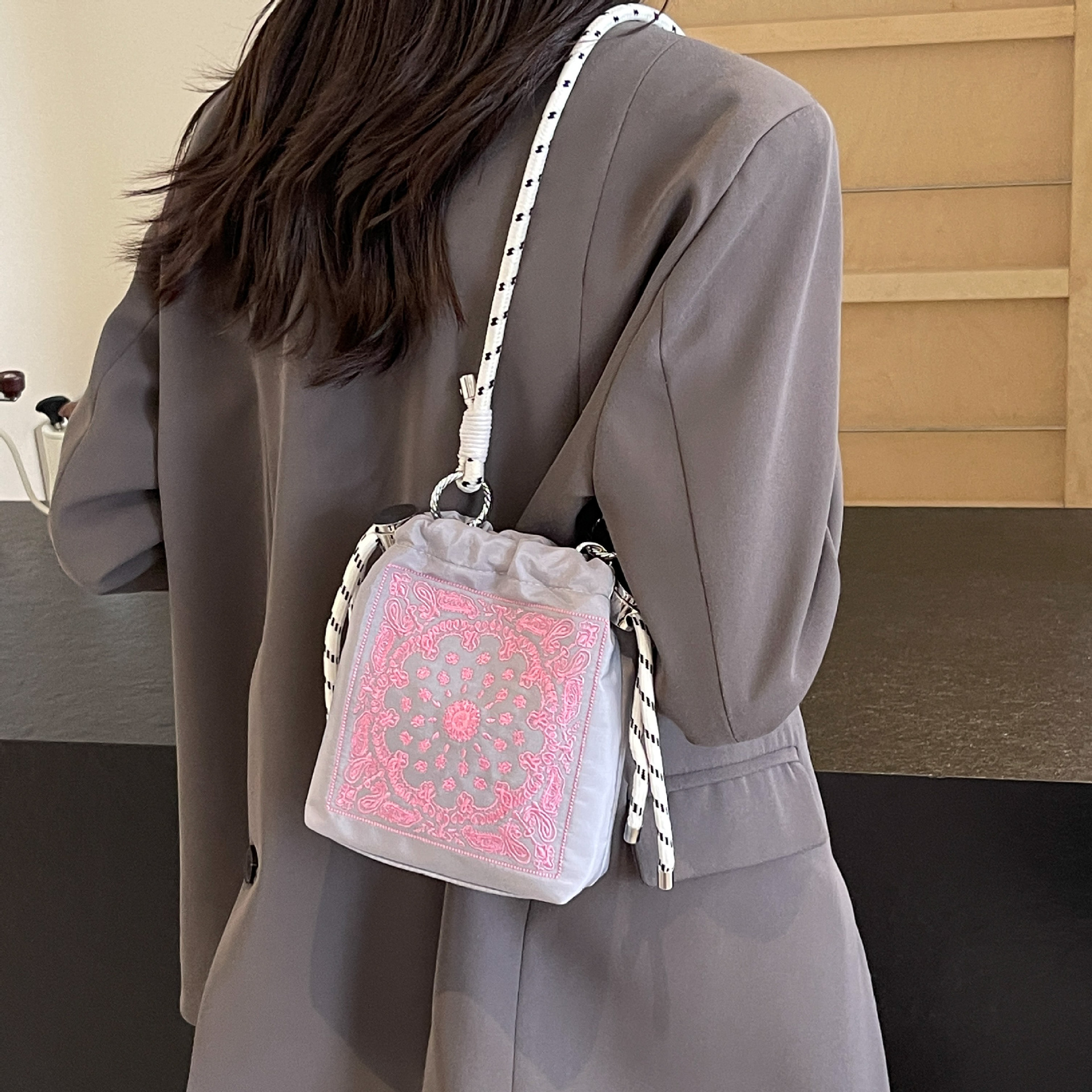 日本と韓国の刺繍ボールチェーン巾着バケットバッグ多用途軽量ナイロンクロスボディニッチデザインショルダーバッグ