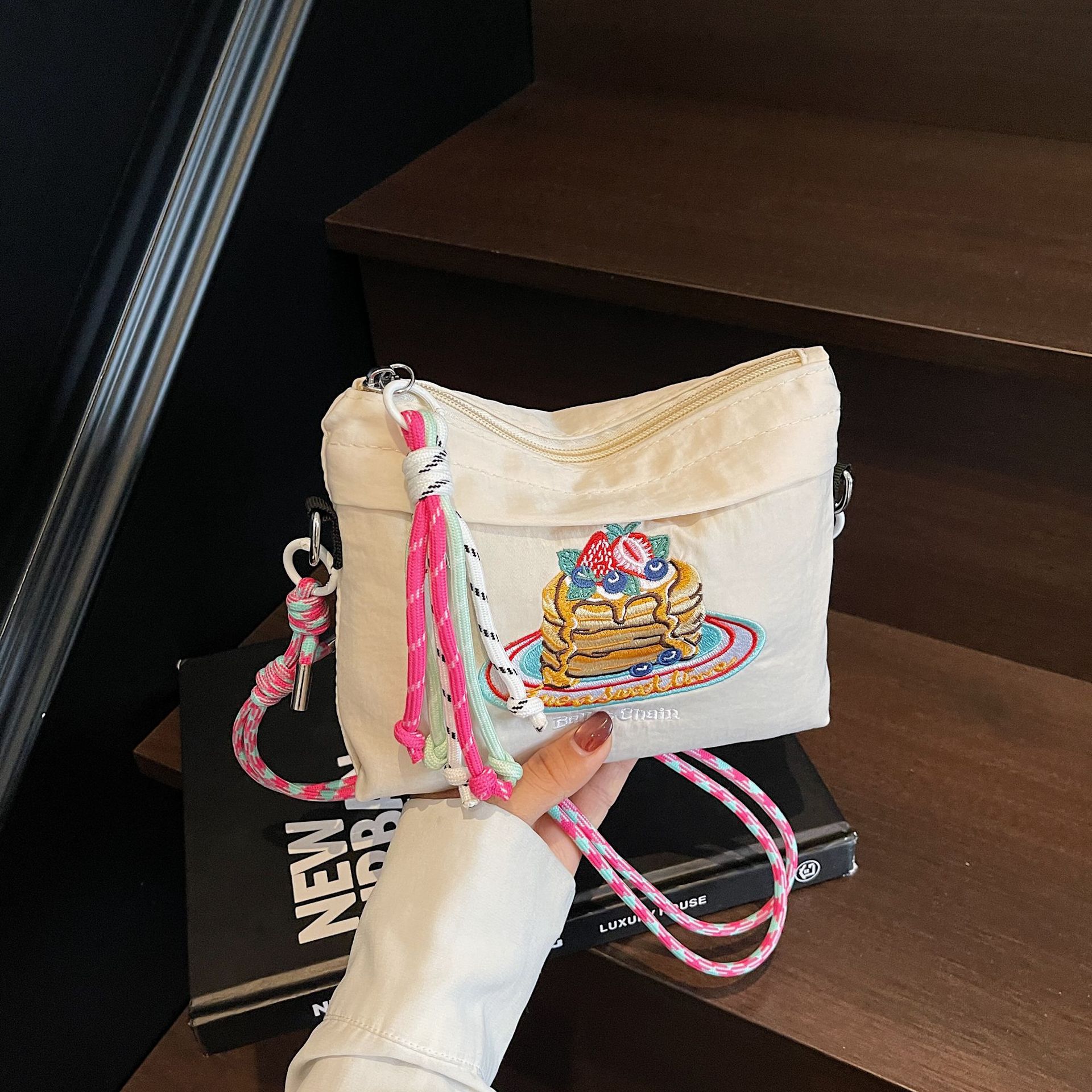 日本刺繍ケーキクロスボディバッグボールチェーン環境に優しい収納袋防水ナイロン甘くてかわいいショルダーバッグ