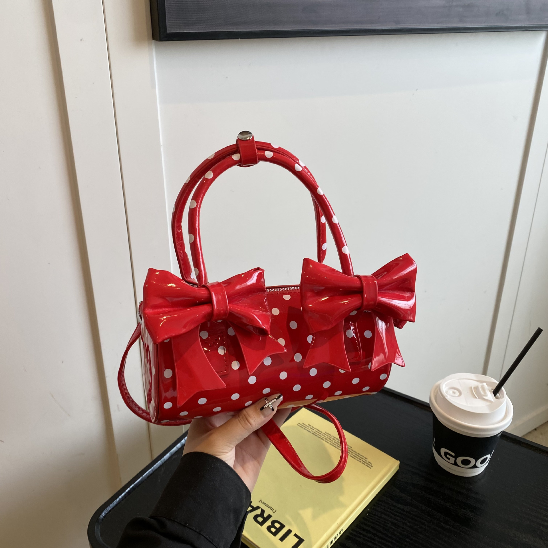 韓国ニッチデザインハンドバッグリボン水玉クロスボーダーバッグシングルショルダークロスボディファッショナブルなボストンレディースバッグ