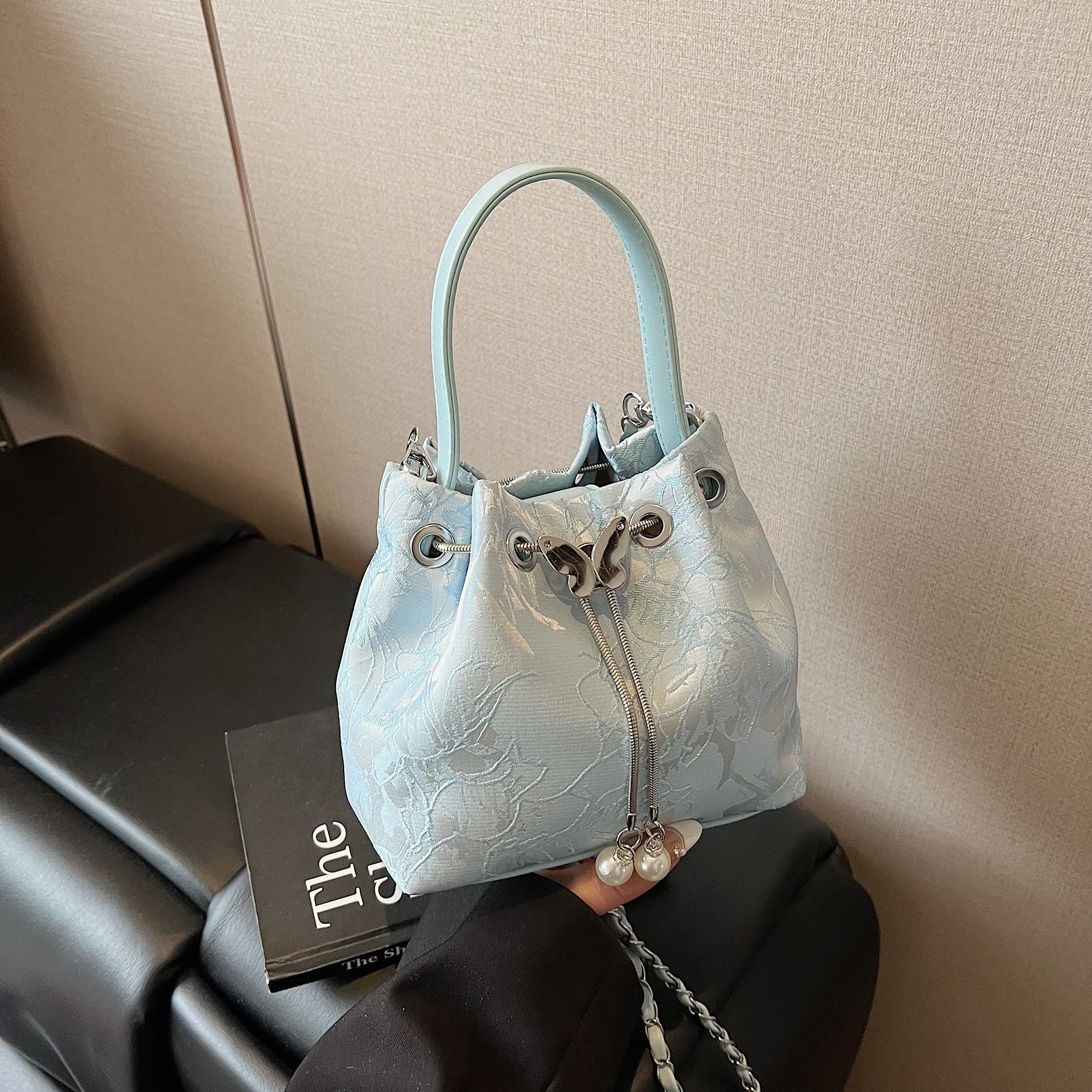 レトロ高級感レイシ柄バケツバッグ女性韓国系シンプルinsファッション通勤シングルショルダーバッグ