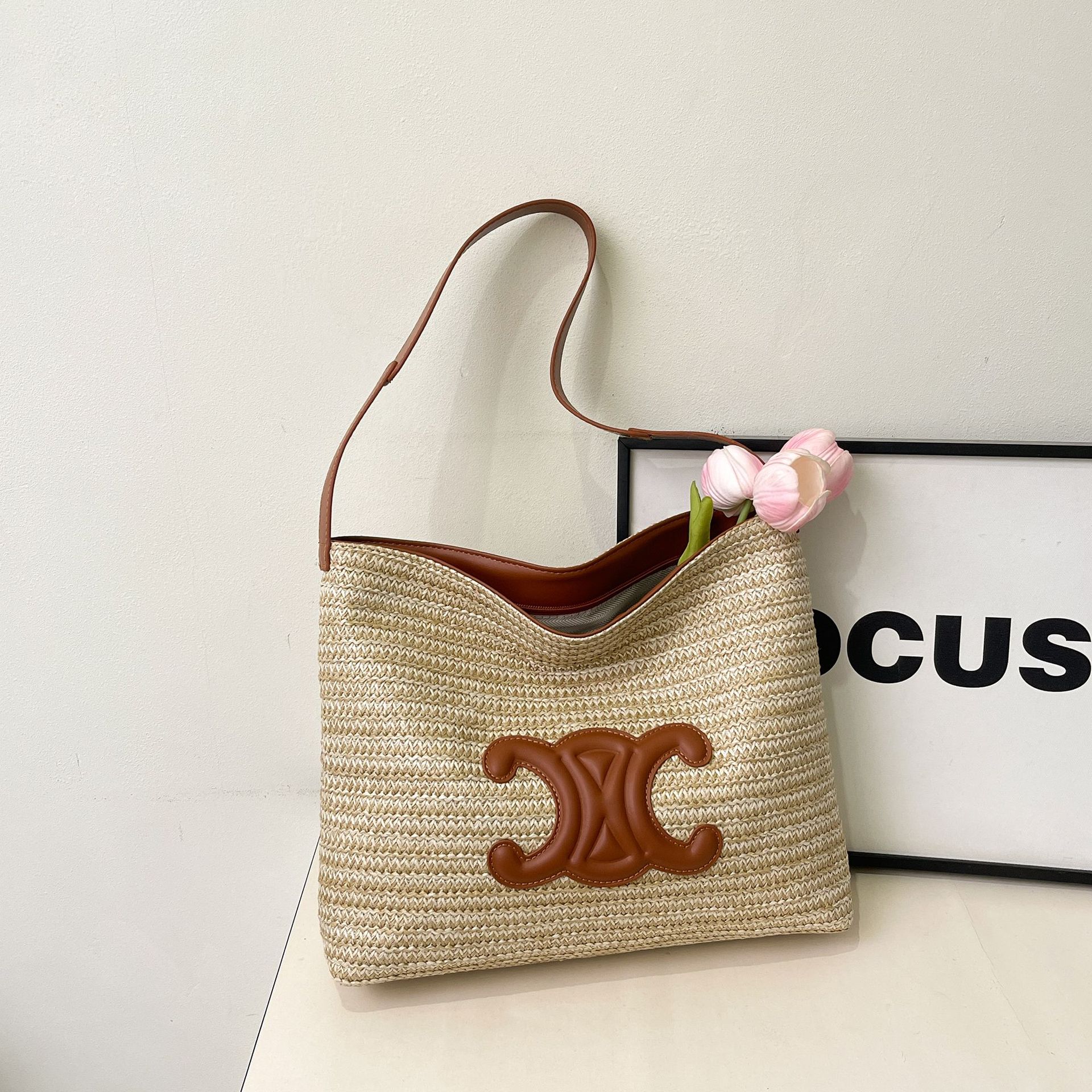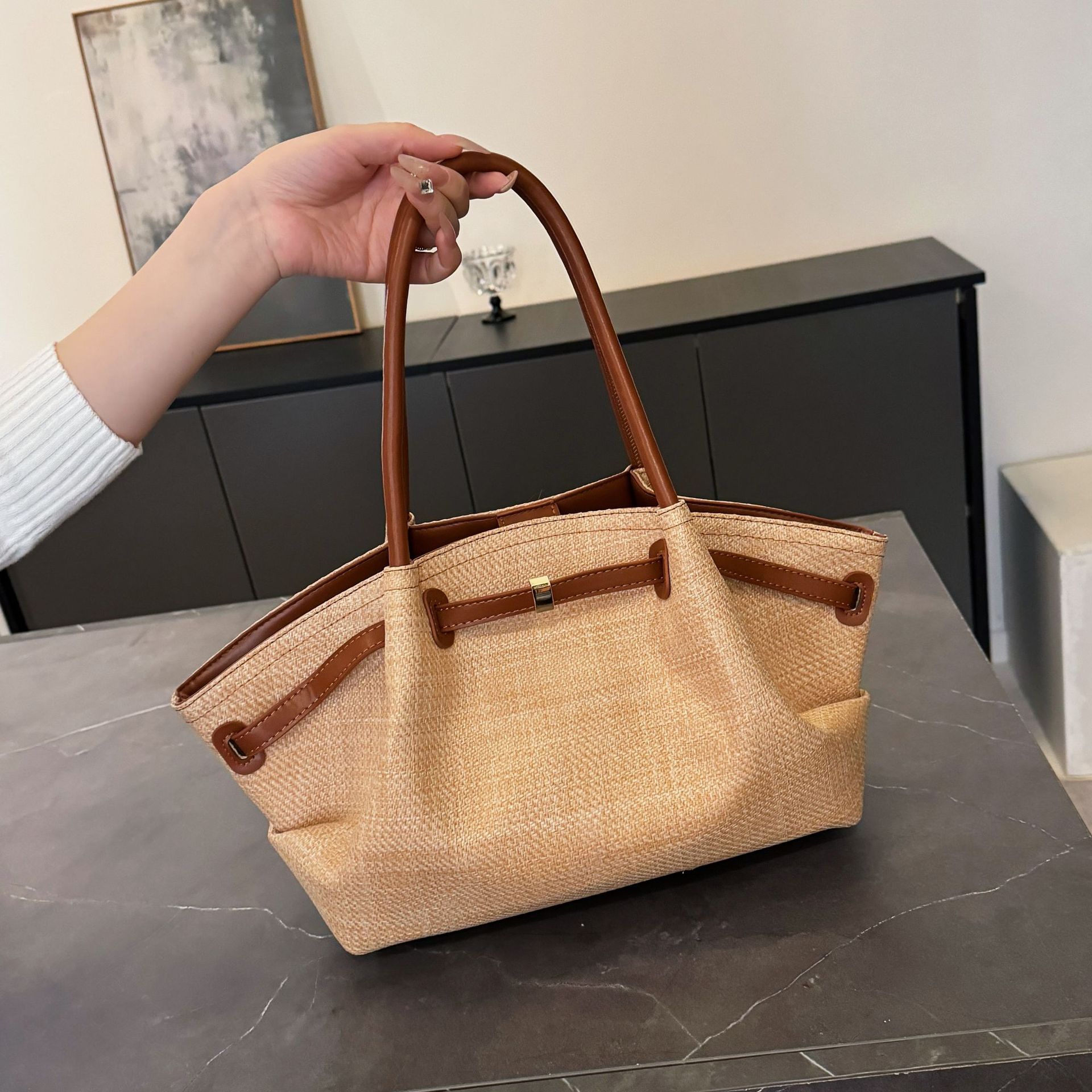 クロスボーダーリゾートスタイル織りトートバッグ、新しいファッションビーチバッグ、スタイリッシュな大容量レディースバッグ、気質ショルダーバッグ