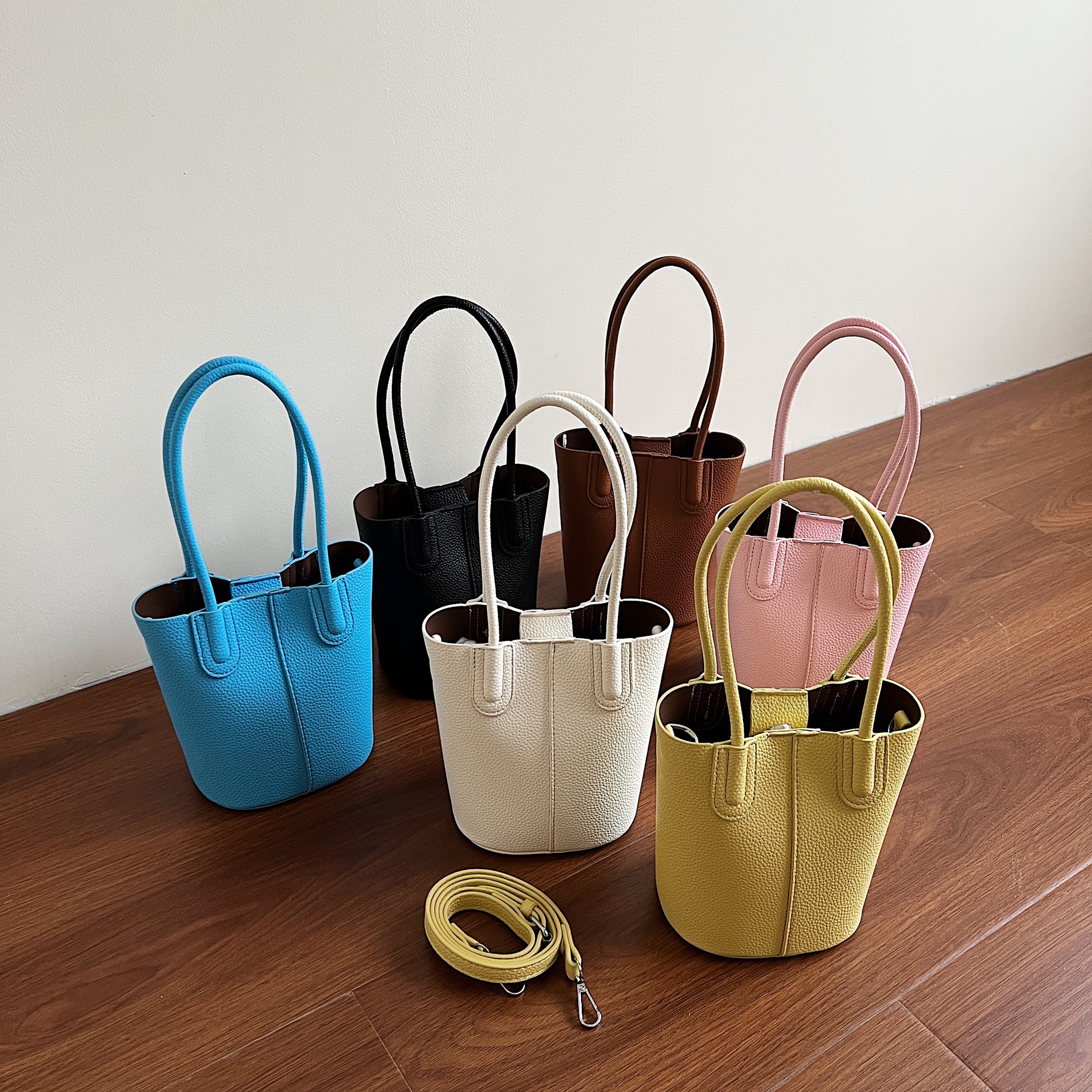 シンプルカジュアルポータブルバケットバッグレディースバッグトレンディファッションクロスボディバッグ春夏人気のライチ柄ショルダーバッグ