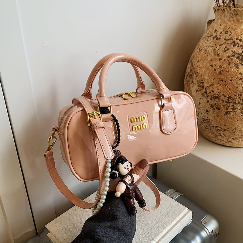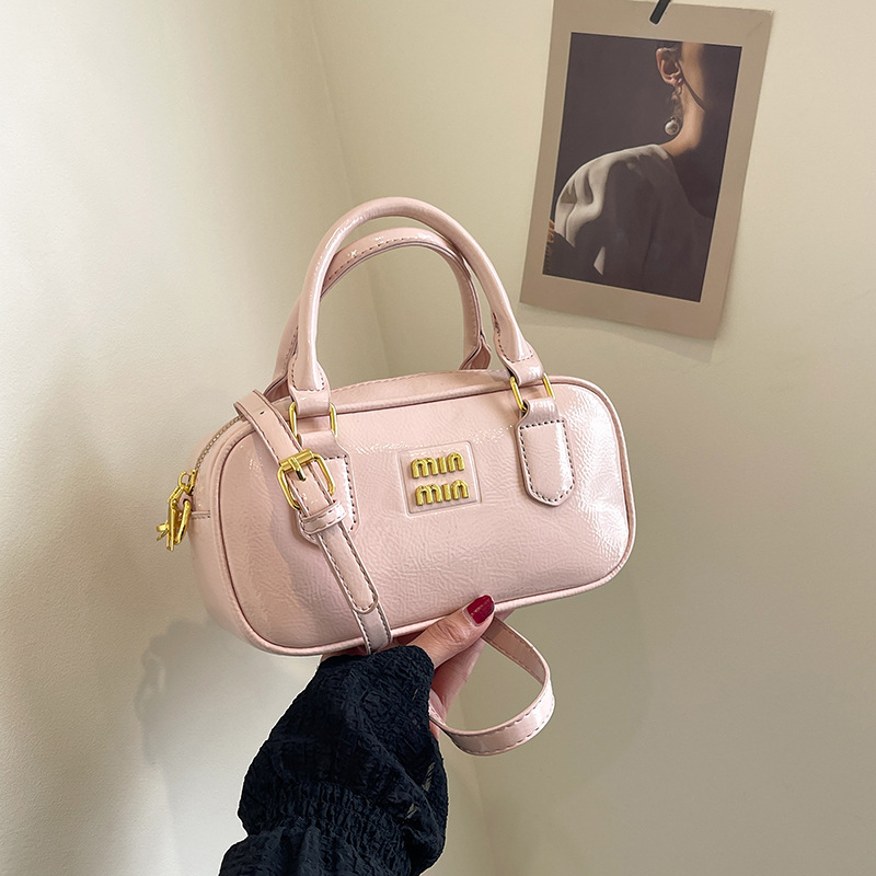 2025新型油皮ミニハンドバッグ韓系小衆口紅包斜め掛けminボーリングバッグ