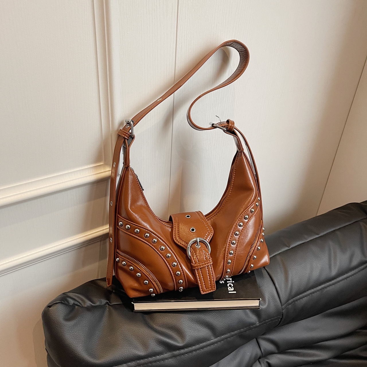 ニッチレトロオートバイスタイルバッグ女性のための 2025 新しいファッショントレンド脇の下バッグ重工業リベットショルダークロスボディバッグ