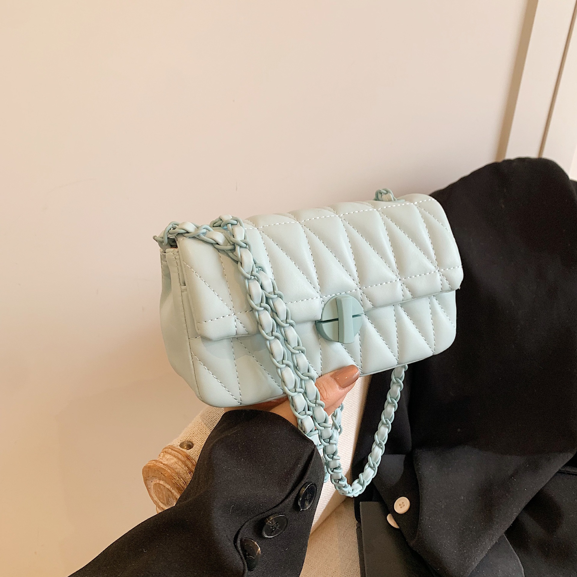 小衆設計ins菱格刺繍糸小方包女2025潮ファッション軟皮鎖片肩斜めショルダーバッグ
