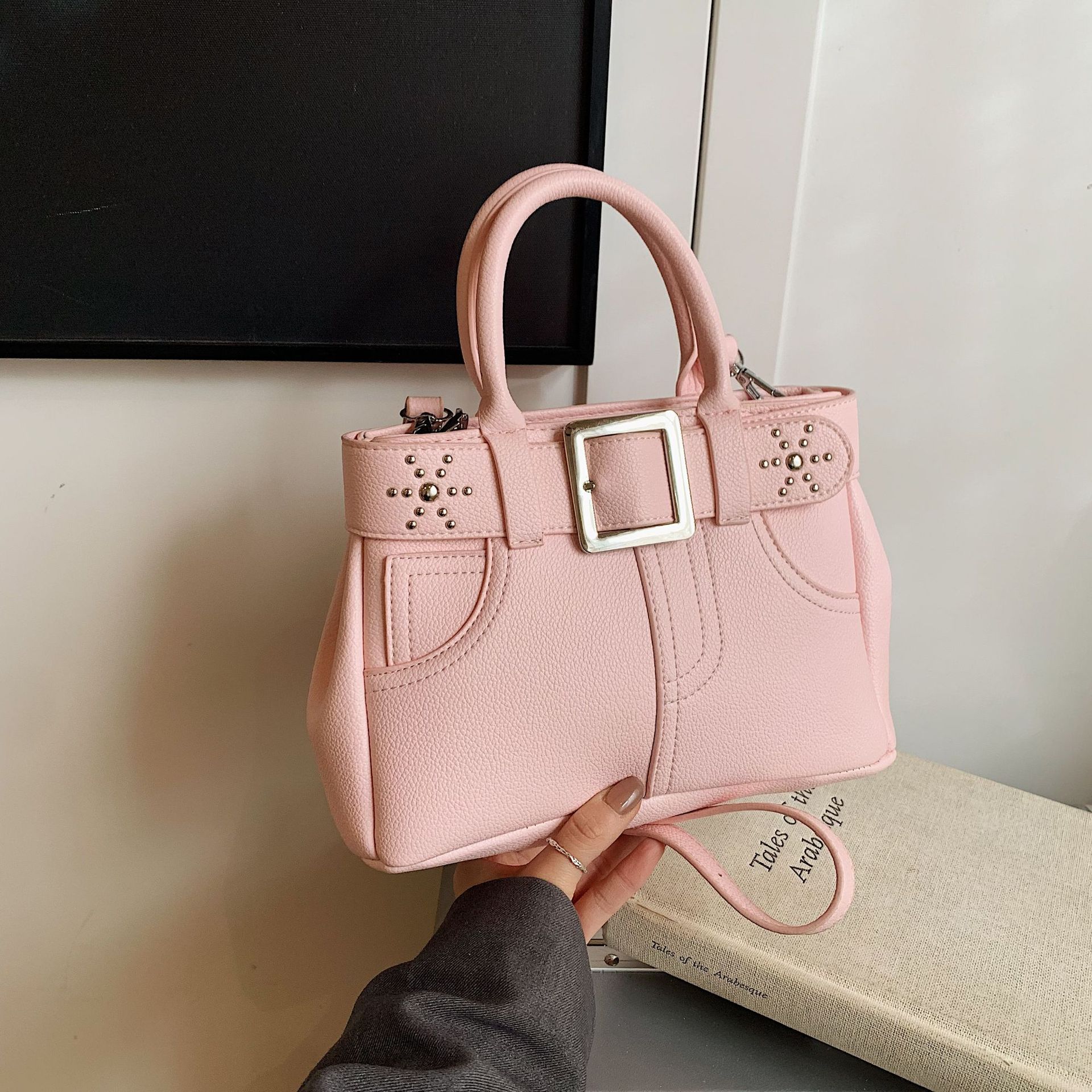 潮クールリベット手提げケリーバッグ女性2025潮ファッション通勤ズボンバッグ百合insシンプルショルダーバッグ