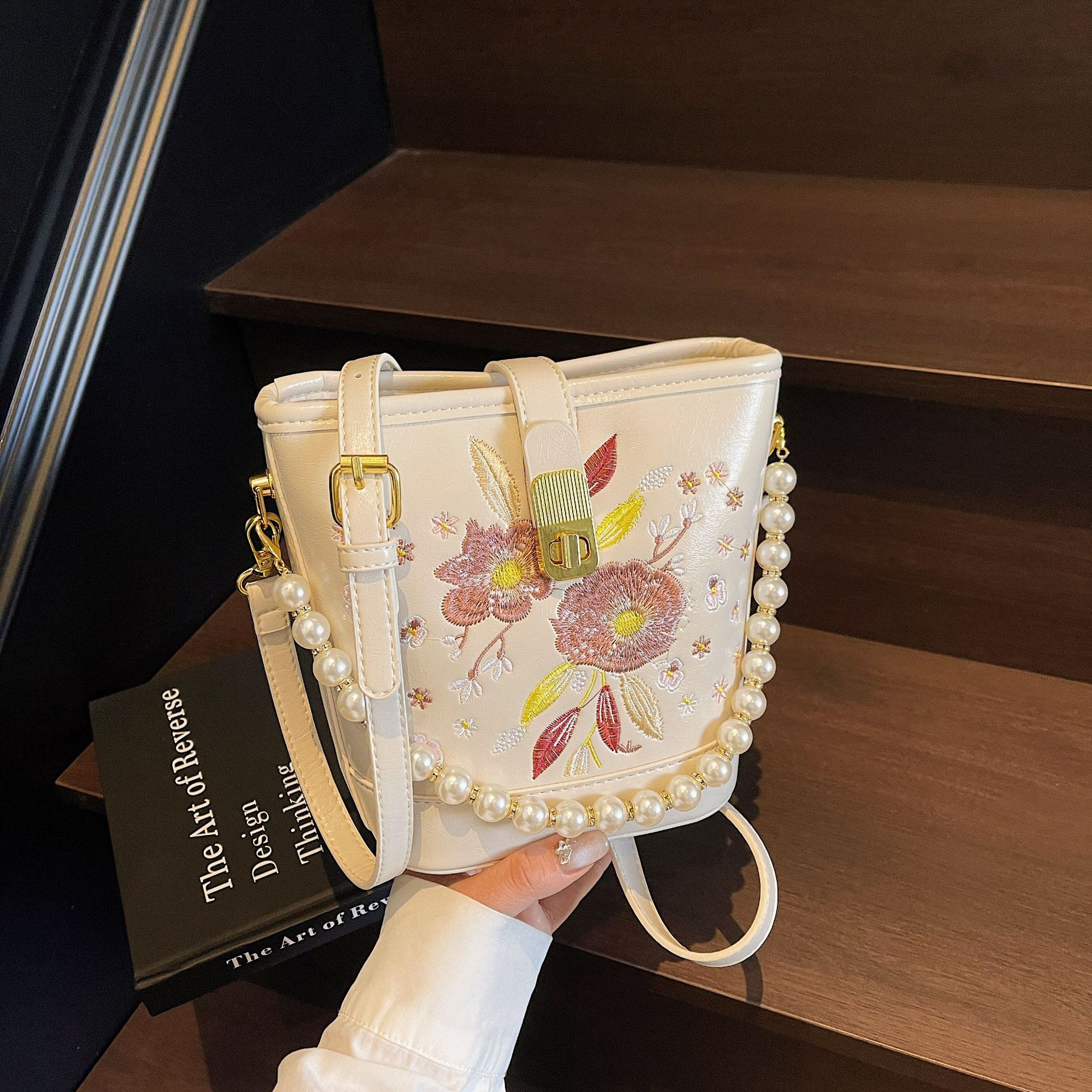高級感中国風刺繍ハンドバッグ女性2025プリント新気質脇下バッグ片肩斜めショルダーバッグ