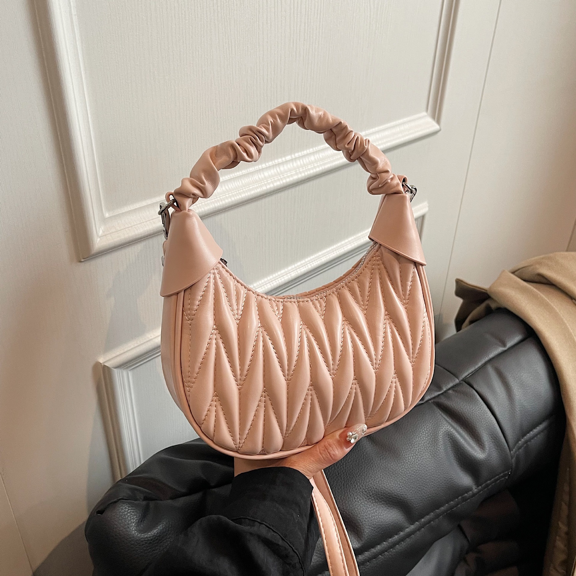 2025新型手提げカバン韓系雲餃子カバン森萌潮流大衆デザインしわ斜め掛けカバン
