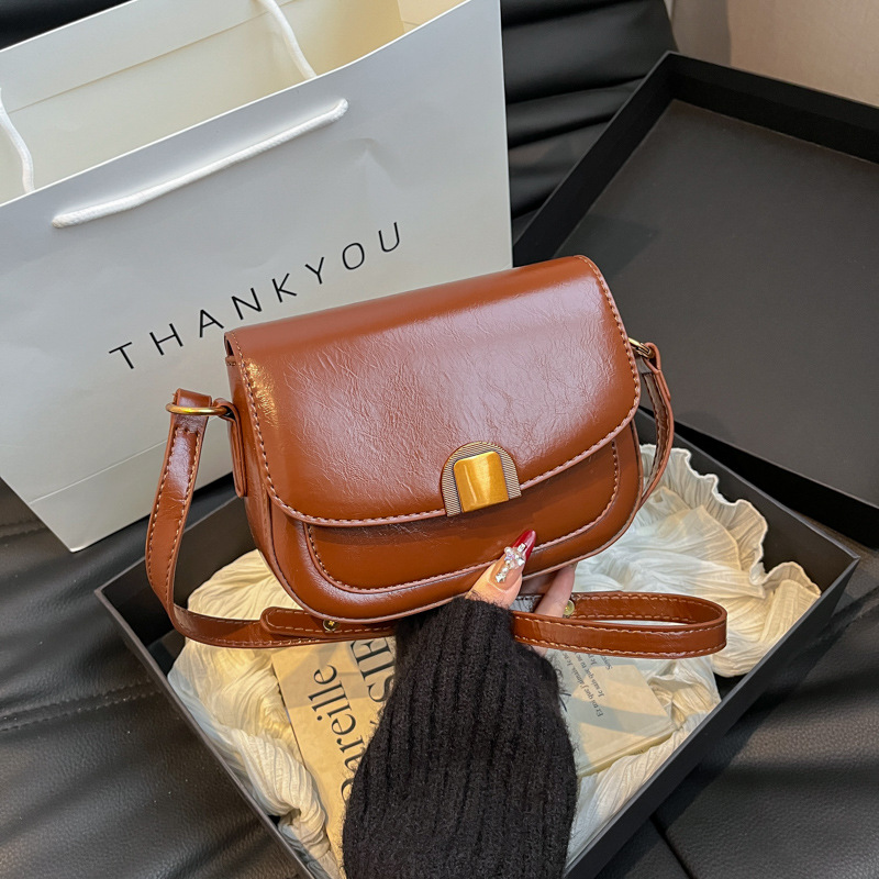 クロスボーダーのレトロな小衆の鞍の包みの女性2025の新型のファッションの純色の女性のカバンの潮流の百合の斜めのショルダーバッグ