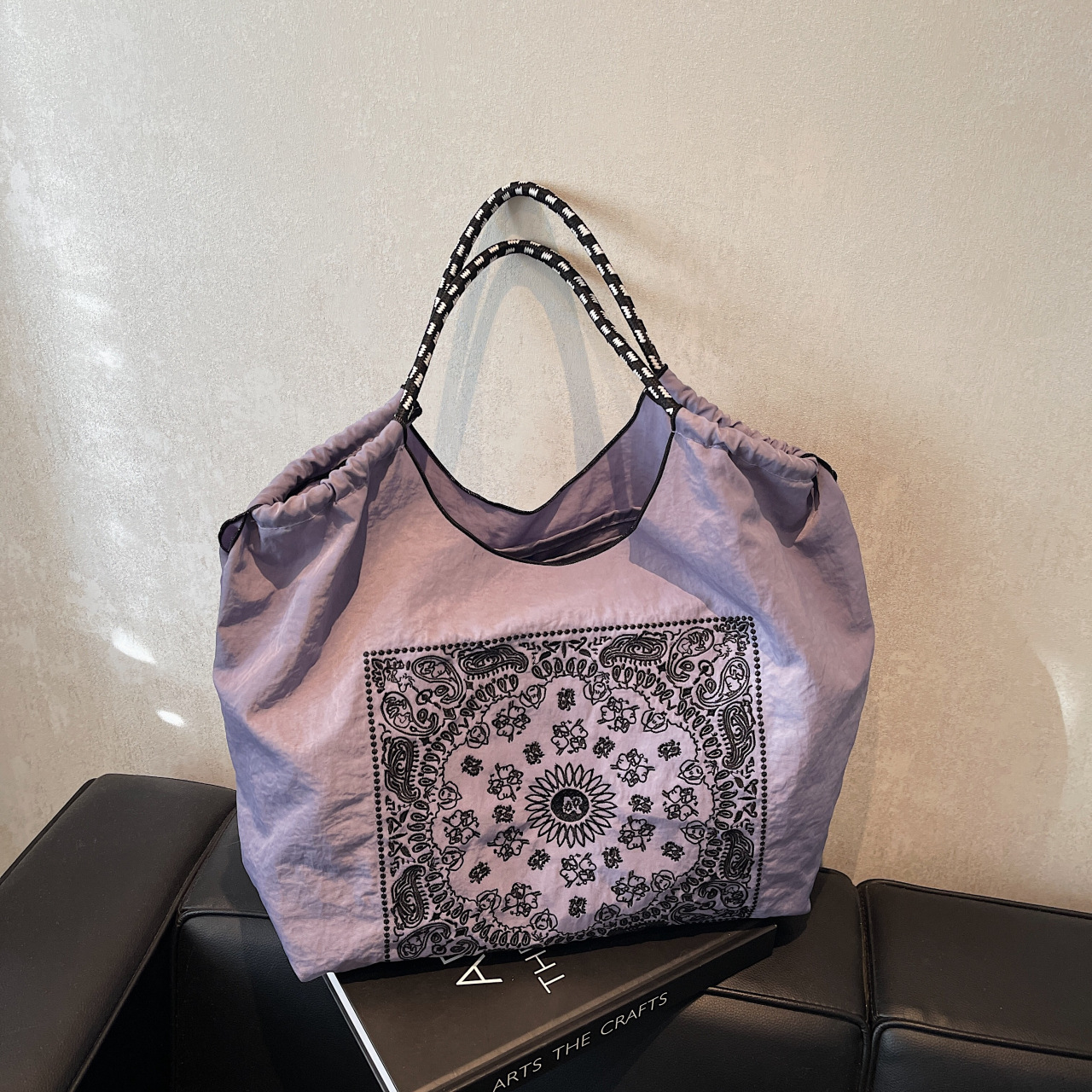 日韓ハンドバッグバッグ女性ナイロン斜め掛けボールチェーン刺繍シンプルなエコバッグ小衆ショッピングバッグ