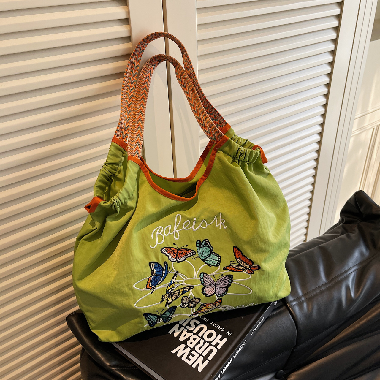 日系刺繍柴犬レジ袋2025国境を越えたエコバッグボールチェーン通勤トートシングル肩女性布バッグ