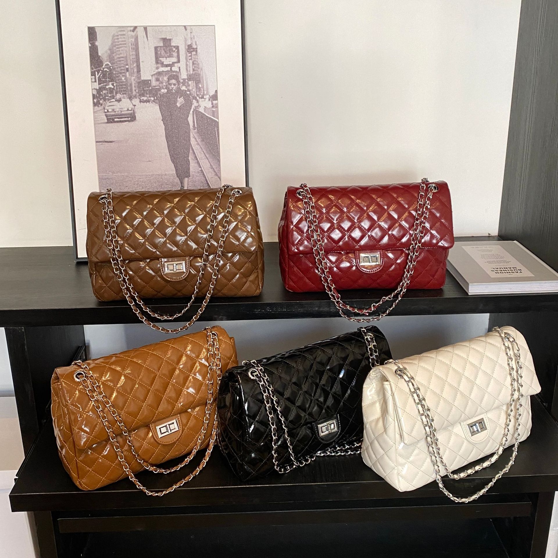 クロスボーダー小香風ケースバッグレディースハンドバッグ欧米明るい面PUハイエンド菱格チェーンシングルショルダーバッグ
